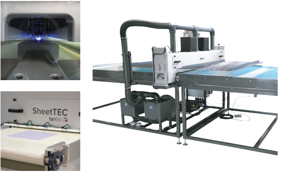SheetTEC平板/片材表面處理設備可以與運輸線獨立使用,也可以方便的集成到目前的產線上,同時可以按客戶要求提供單面處理和雙面處理系統。