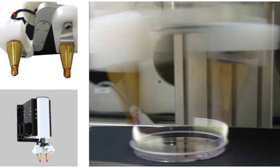 SpinTEC 是采用交流電機(jī)將2個PlasmaTEC-X的噴頭以最輕便的方式組合在一起,組成的以軸心為旋轉(zhuǎn)點的高速旋轉(zhuǎn)處理機(jī)構(gòu)。
